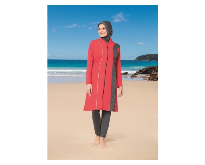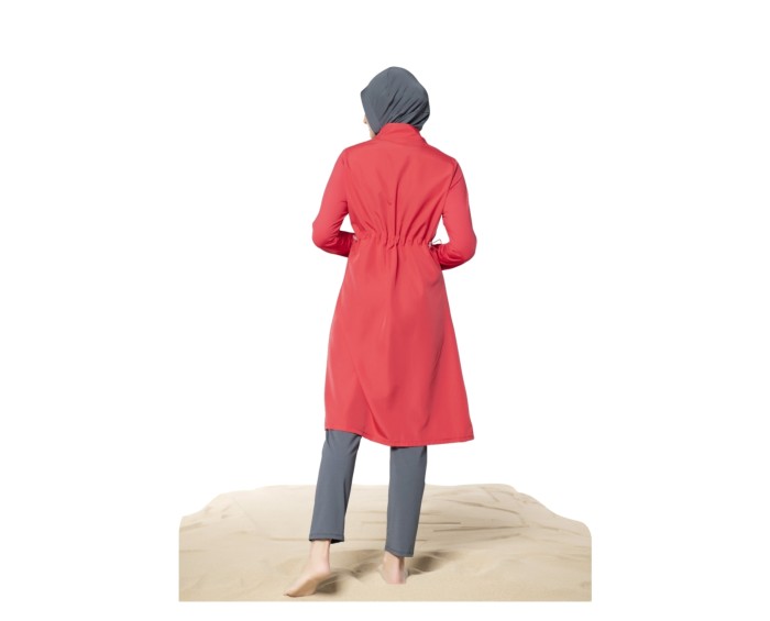 Düz Renk Dik Yaka Uzun Boy Tesettür Mayo